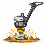 Equipamentos para compactação e nivelamento do solo antes do início da obra.